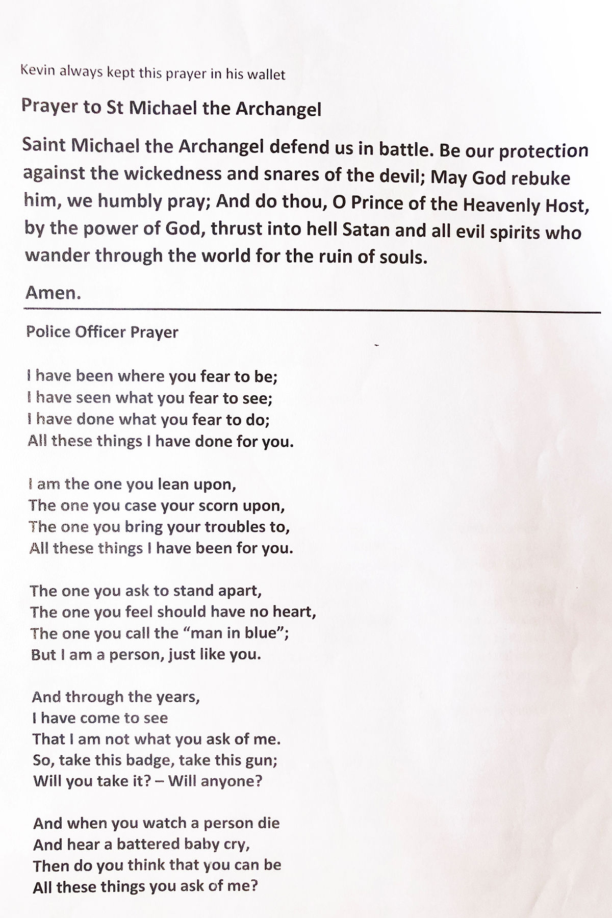 Kev always kept this poem in his Police wallet: